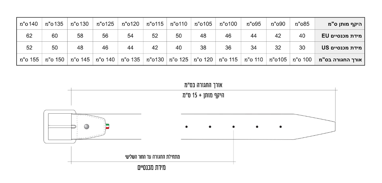 • האחריות ניתנת לכל חגורה באתר למשך שנה